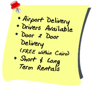 In Cairo we have our car rental station and our service station. We rent cars in other cities like Sharm and Taba upon request. Our cars can be rented with or without drivers. Limo service is available in luxurious cars. Travelers can also request a one day trip with an authorized English speaking guide to visit Cairo or Alexandria. |